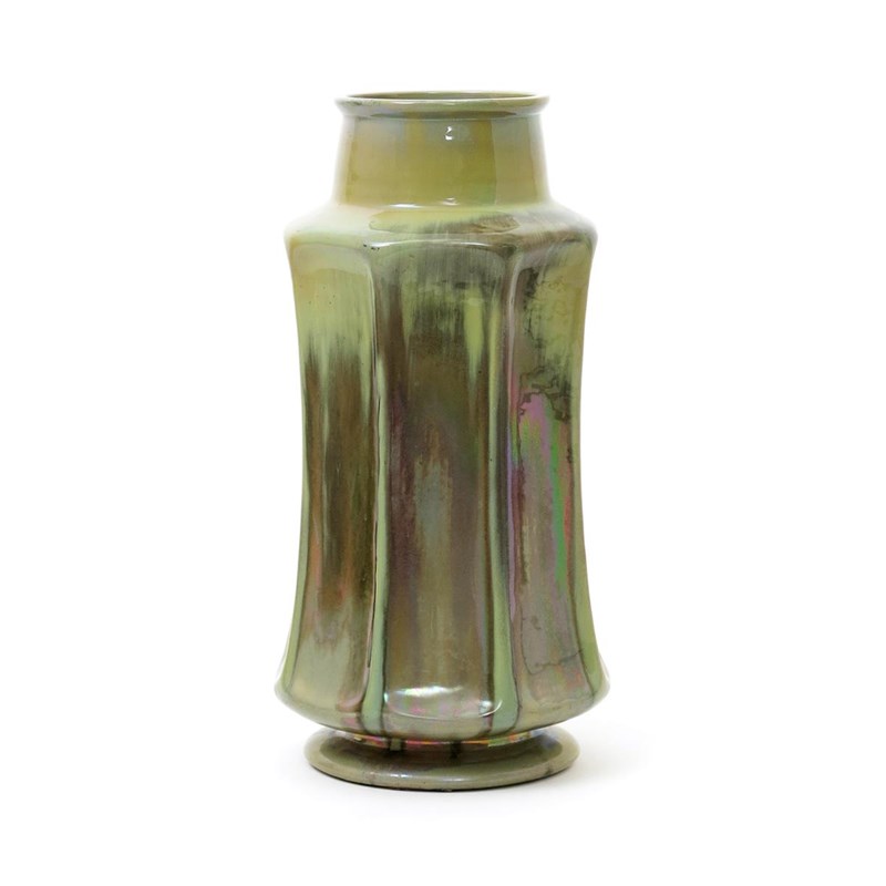 Jennifer Hawkins, The Poole Potteries, Barrie & Jenkins, page 97 for two comparable gadrooned lustre vases illustrated.