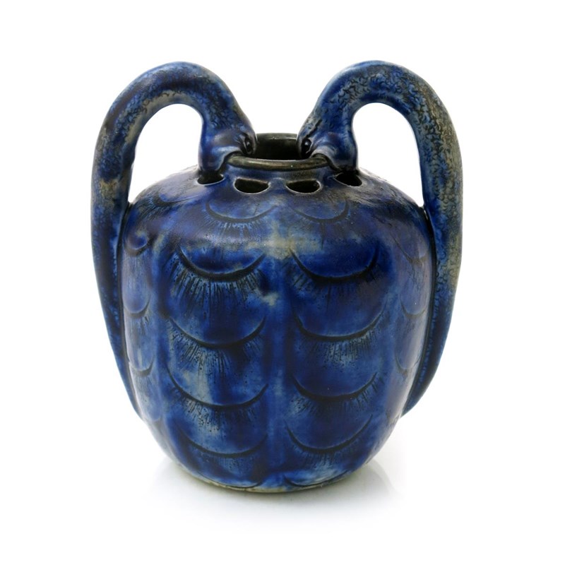 A Martin Brothers stoneware vase with serpent handles by Edwin & Walter Martin