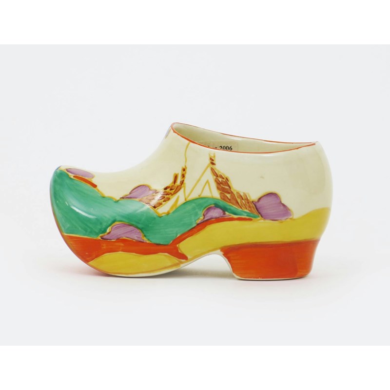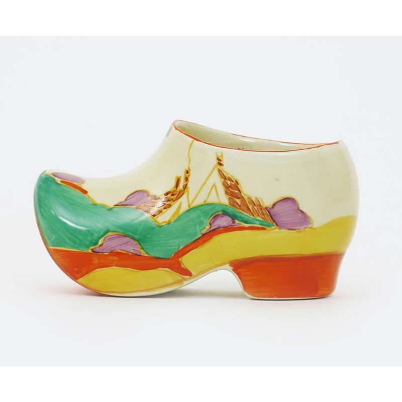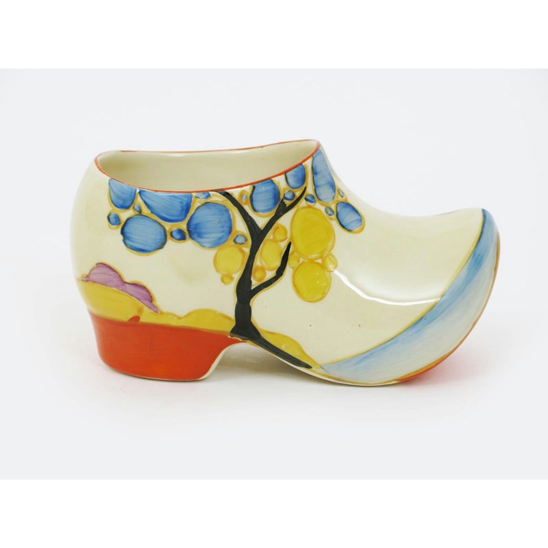 'Orange Secrets' a Clarice Cliff Fantasque Bizarre Clog, painted in colours printed factory mark, 14cm. wide