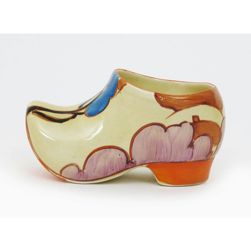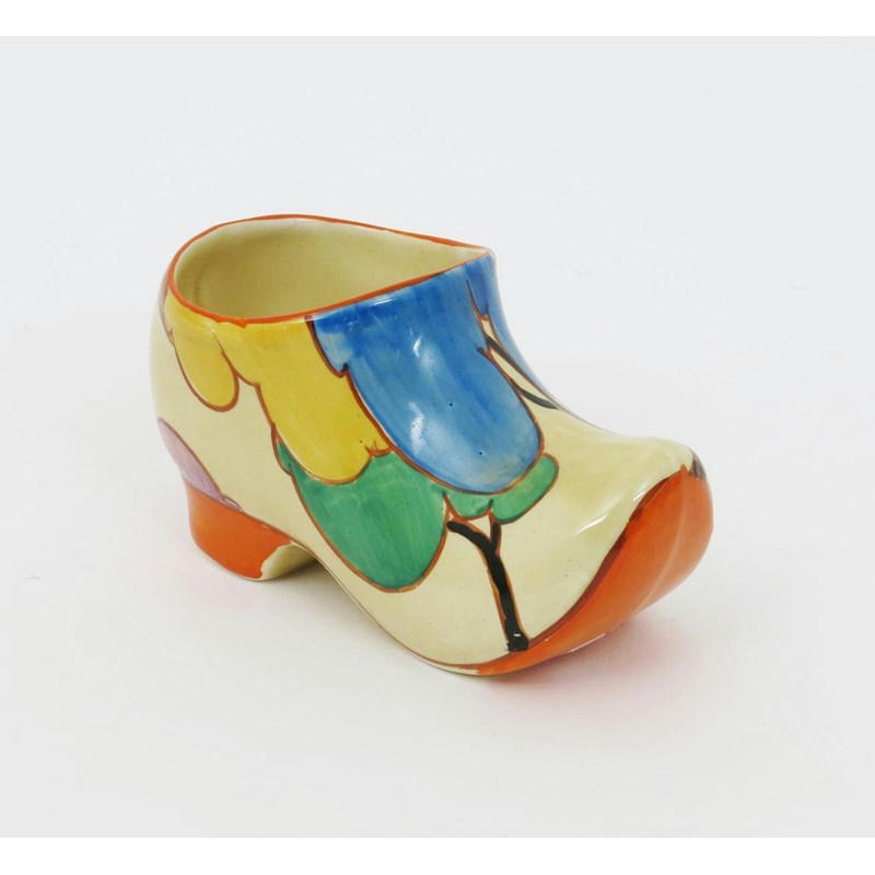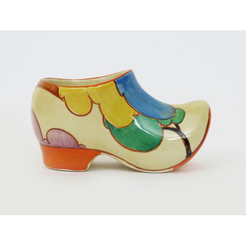 'Blue Autumn' a Clarice Cliff Fantasque Bizarre Clog, painted in colours, printed factory mark, 13cm. wide