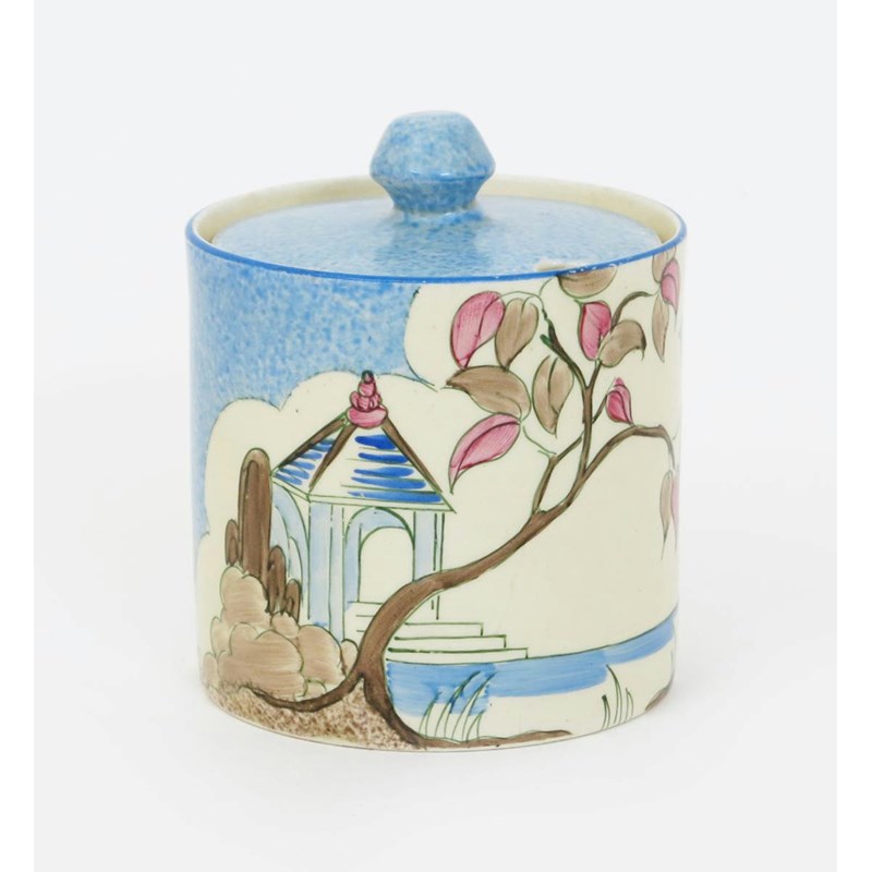 'Blue Japan' a Clarice Cliff Bizarre Cylindrical preserve pot and cover