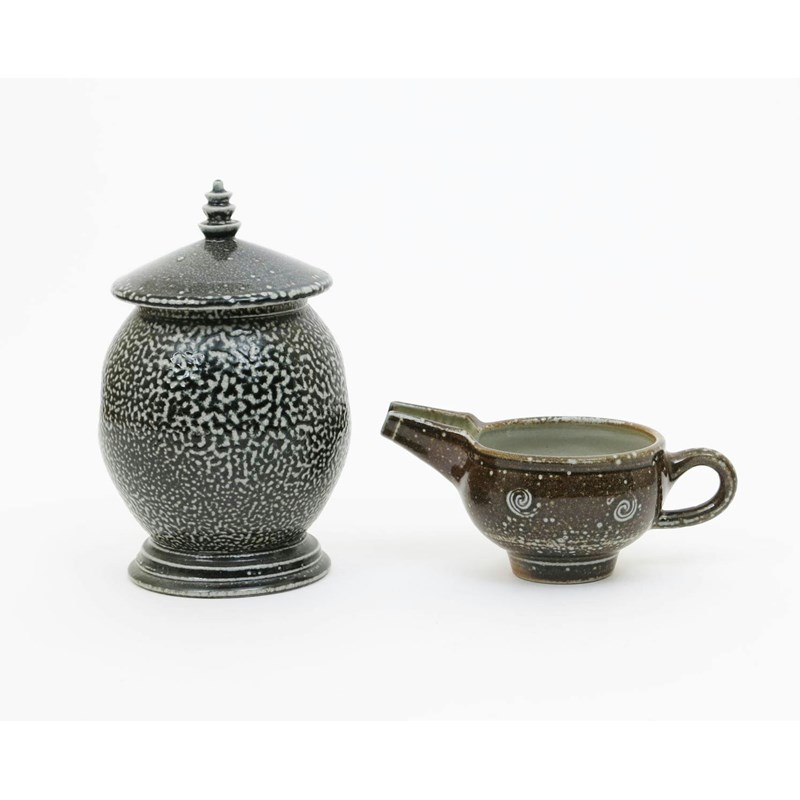 Walter Keeler (born 1942) a salt-glaze stoneware storage jar and cover