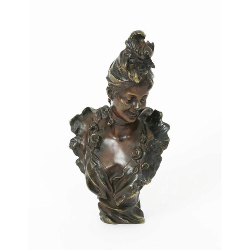 Dancer with Flowers a patinated bronze bust cast from a model by V Bruymee signed in the bronze