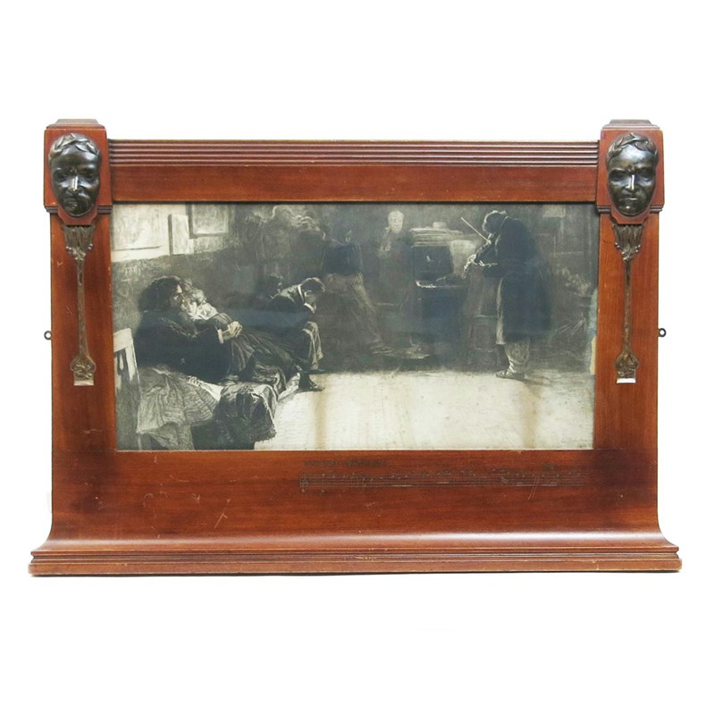 'Beethoven' an Arts and Crafts carved mahogany frame, rectangular, carved with foliate columns and set with patinated copper life masks, incised musical score for Andante Cantabile, with print dated Paris 1901, 90 x 58.5cm.