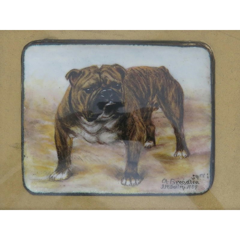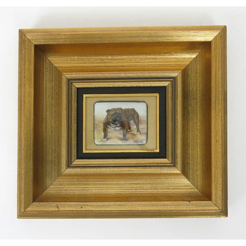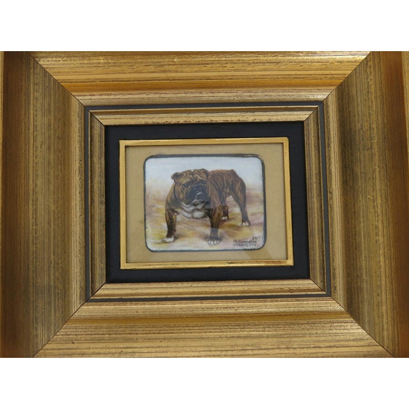 miniature enamel portrait of a bulldog, framed