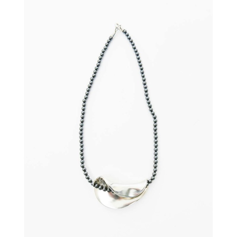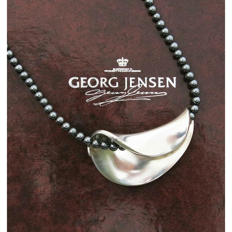 A Georg Jensen silver necklace, modelled as a simple leaf wrapped around a ball chain, stamped mark, facsimile signature 5cm wide (leaf)