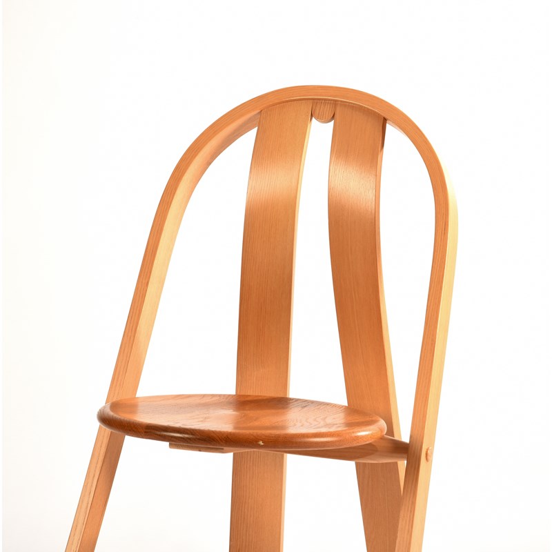 ash, with a steambent back and supports, and a solid circular seat