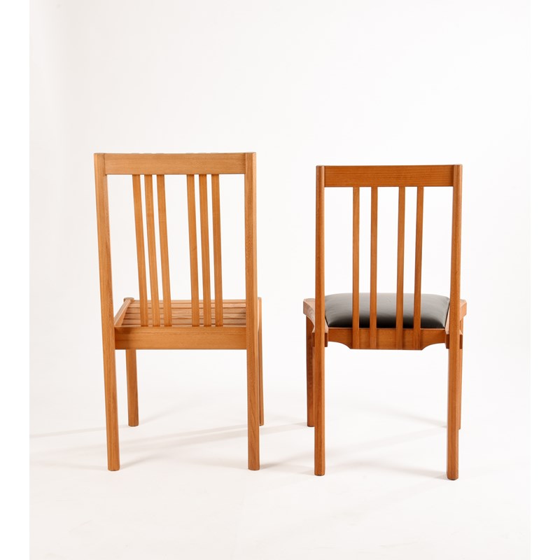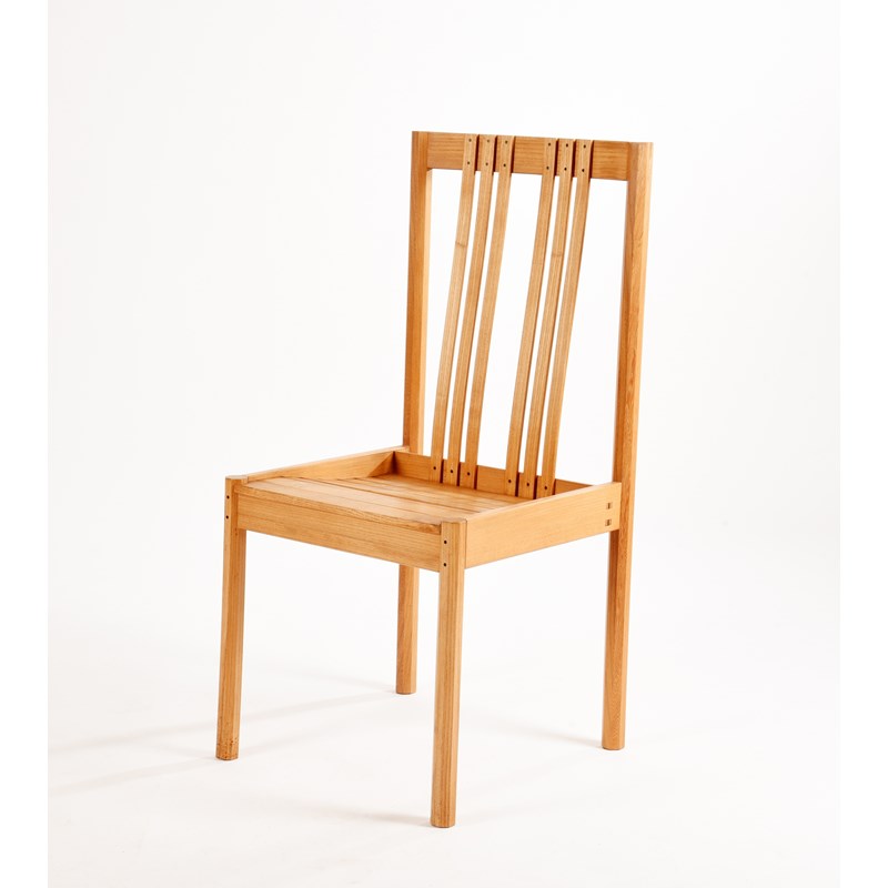 92cm high, 53cm wide; and a similar slatted elm and ash chair by Alan Peters (2).