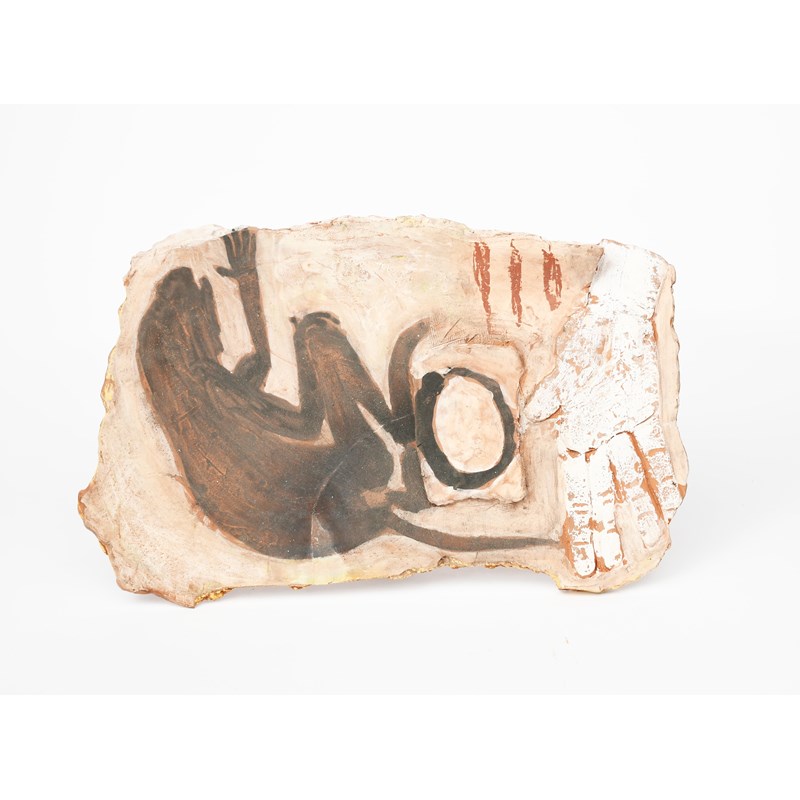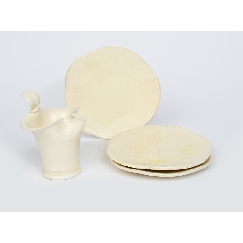 a creamware jug and three plain creamware side plates by Takeshi Yasuda, four vases by Dan Kelly and a large pottery plaque