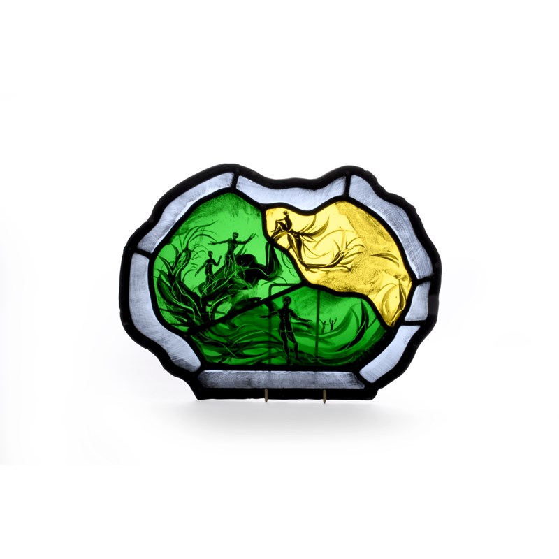 leaded and painted glass panel