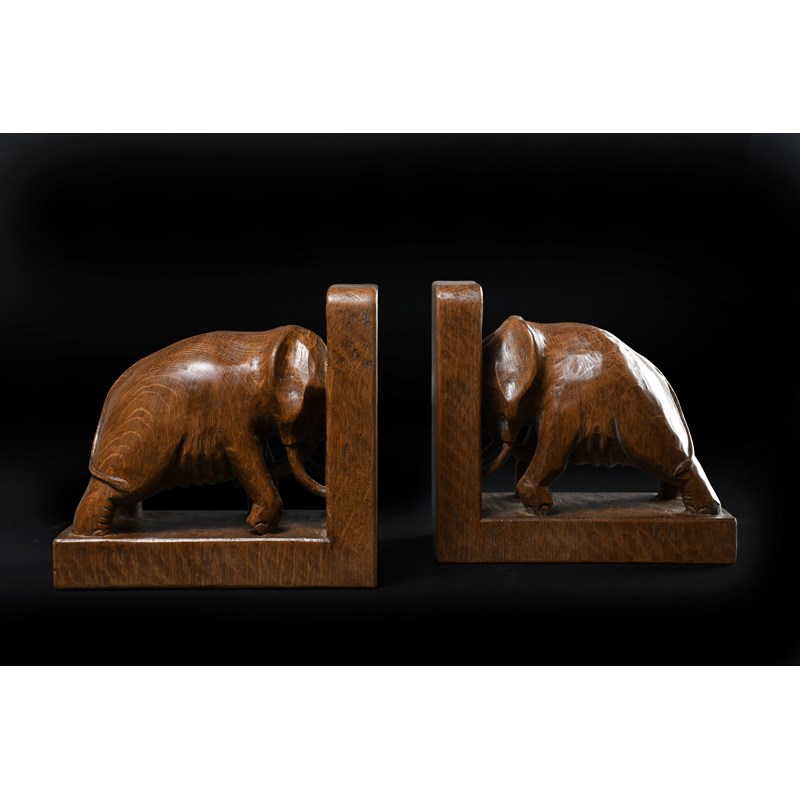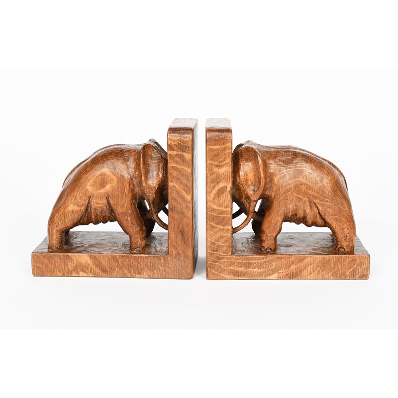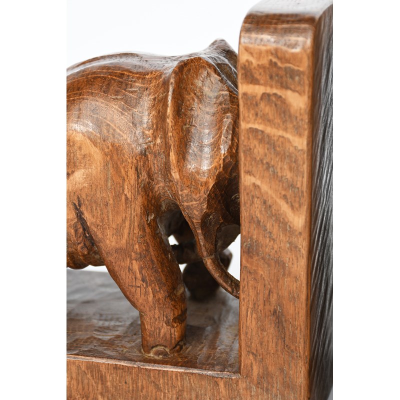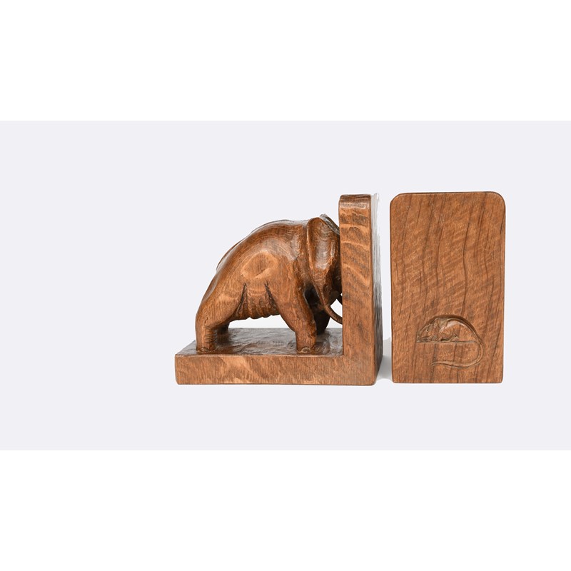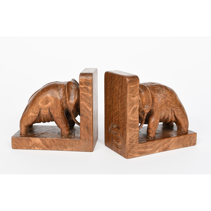 A rare pair of Mouseman Elephant book ends