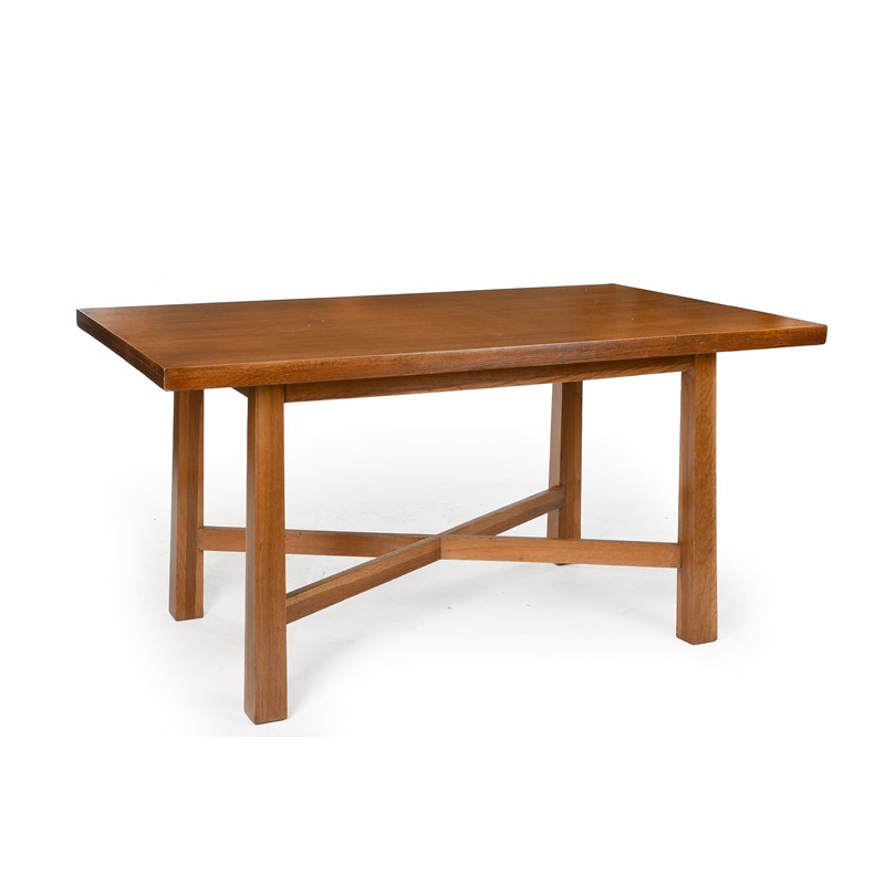the rectangular top over square cut legs joined by a 'X' shape stretcher