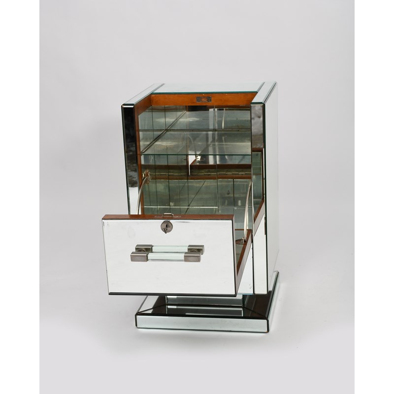 A mirrored glass cocktail cabinet