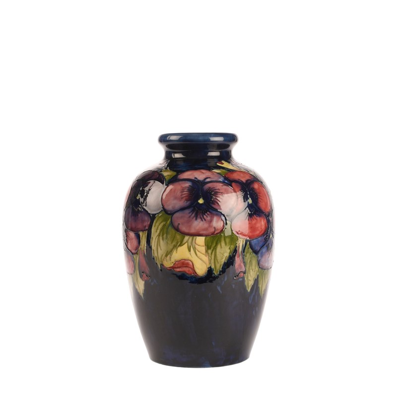 shouldered form, slip decorated with flowers in colours on a blue ground
