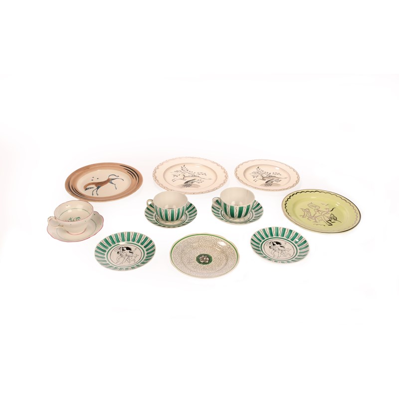 the largest 23cm diameter; with similar pottery designed for the Art in Industry exhibition, designed by Laura Knight, Graham Sutherland, John Armstrong and others (qty).