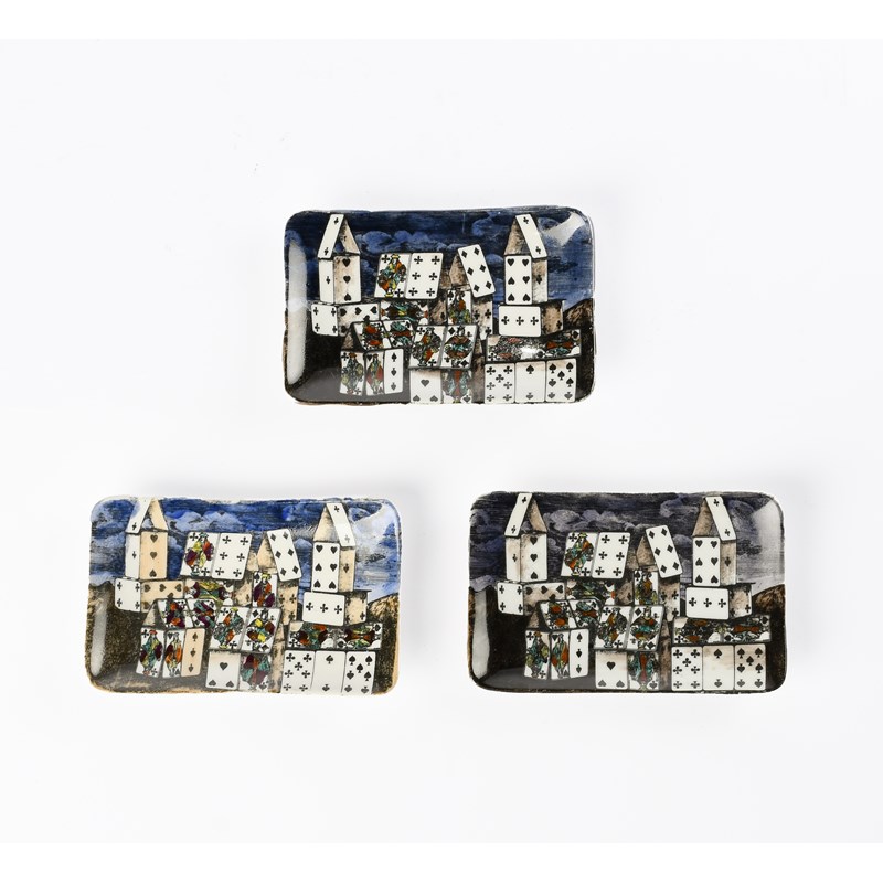 Three Fornasetti Citta di Carte dishes