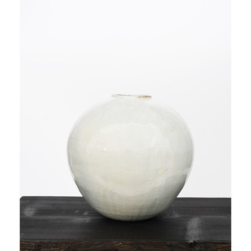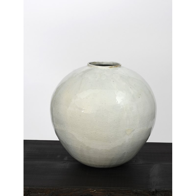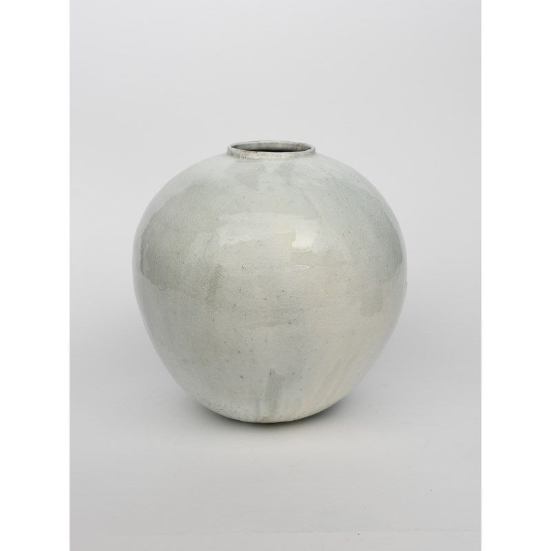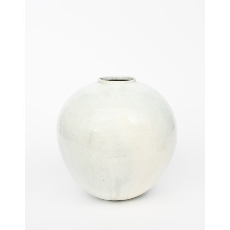 ovoid stoneware vase with collar rim, covered in a pale white porcelain glaze