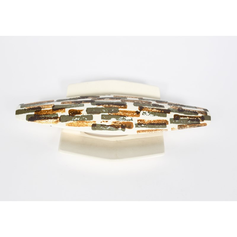 A rare Hornsea Pottery wall light designed by John Clappison, cast and screen printed with abstract design in olive and ochre, printed factory marks, 36cm. high