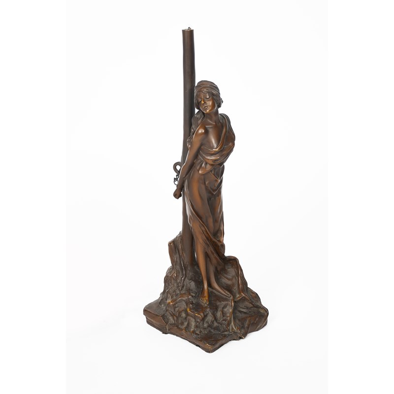 a patinated bronze sculptural table lamp