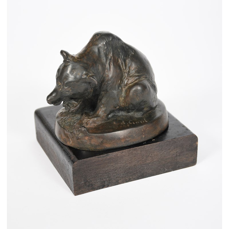 August Gaul (1869-1921) Fressender Bar (Bear Eating) patinated bronze with ebonised wooden base...