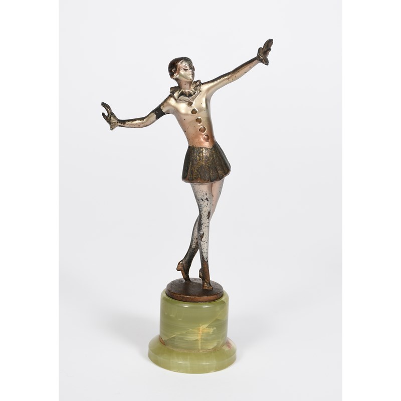 Josef Lorenzl (1892-1950) Dancer cold painted bronze on green veined onyx base signed in the...