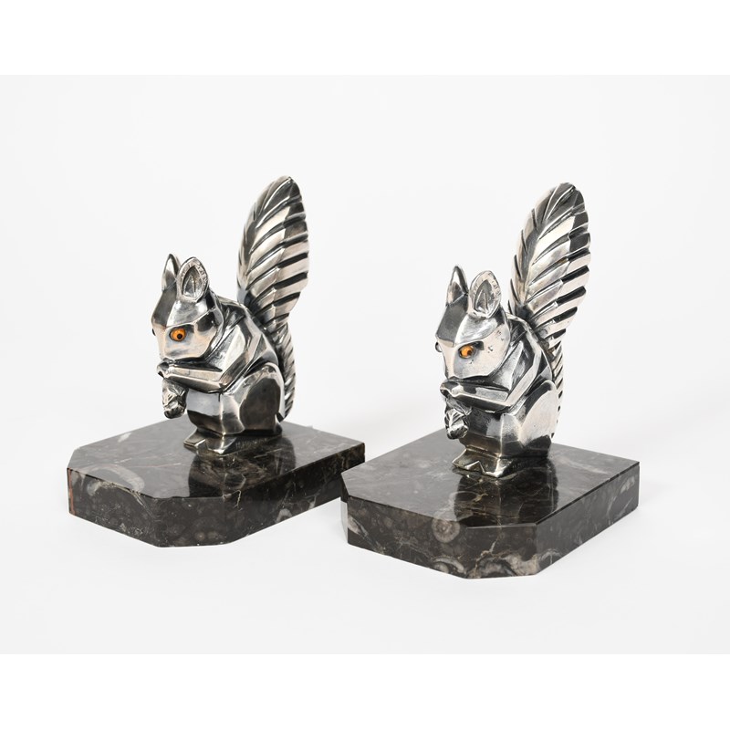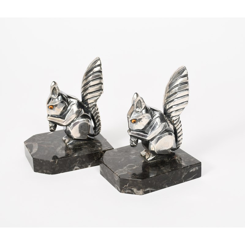 A pair of polished metal squirrels cast from a model by Hippolyte Moreau