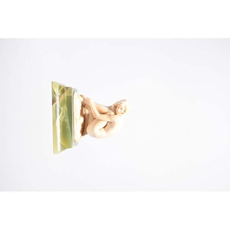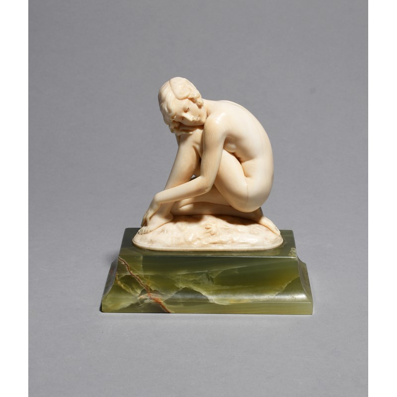 λFerdinand Preiss (1882-1943) Dreaming a carved ivory figure on flaring green onyx base