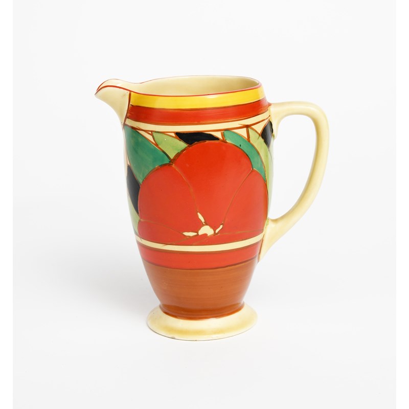 'Red Gardenia' a Clarice Cliff Fantasque Bizarre Coronet jug