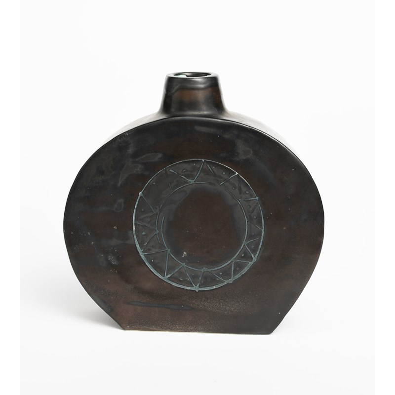 A Troika Pottery large Perfume Bottle designed by Benny Sirota disc form with solifleur aperture