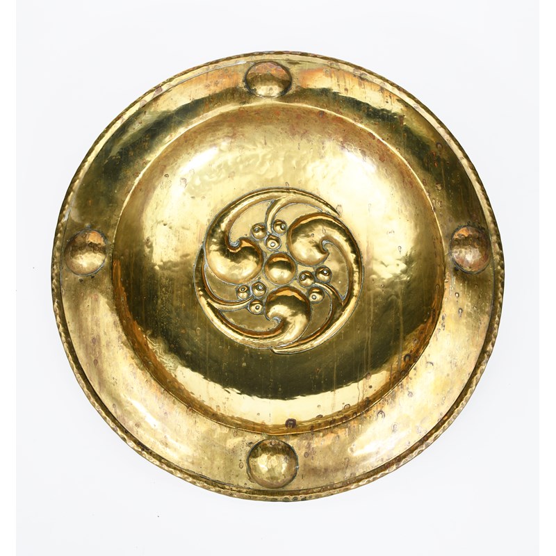 A Glasgow School brass wall charger designed by Margaret Gilmour