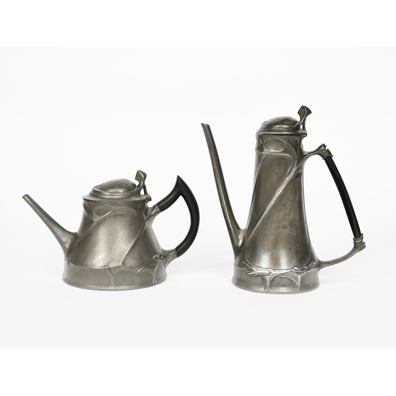 An Orion pewter teapot and coffee pot designed by Friedrich Adler