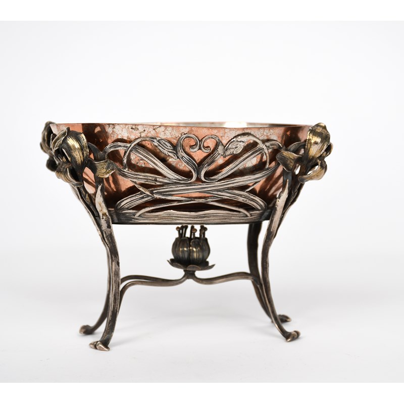 An Art Nouveau silver pedestal dish with electroplated bowl