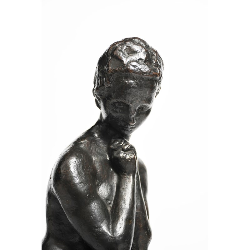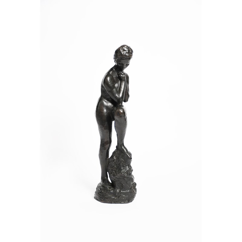 a tall patinated bronze sculpture of a naked female standing, cast by Gonot Foundry posthumously,