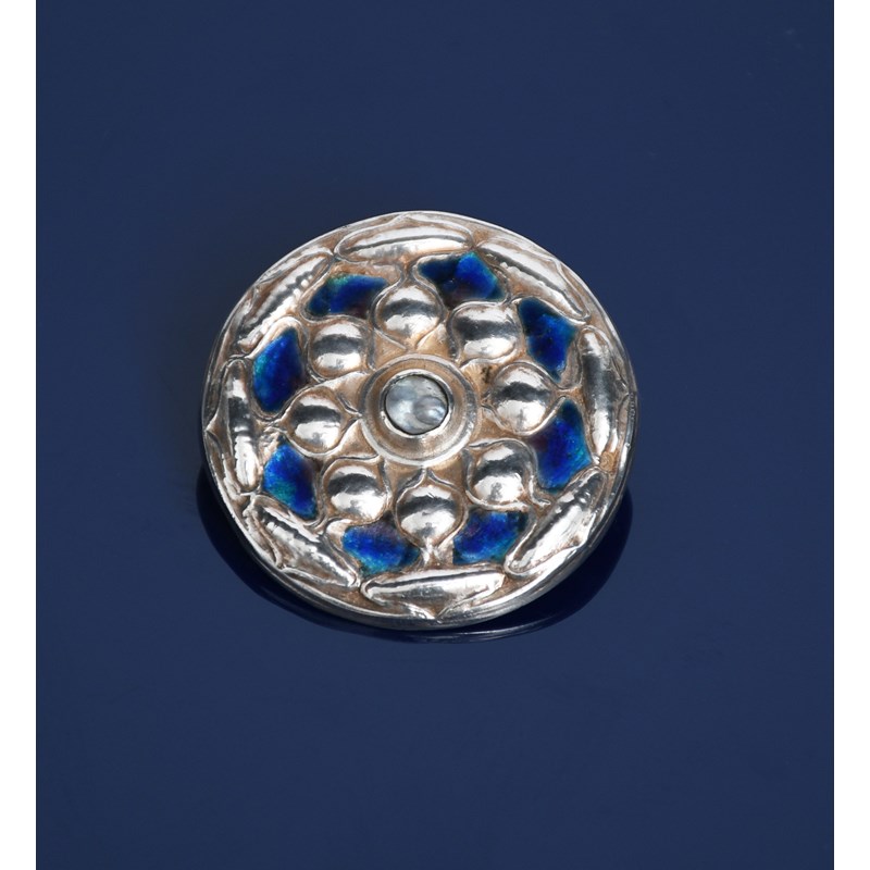 A Liberty & Co Cymric silver and enamel brooch designed by Archibald Knox