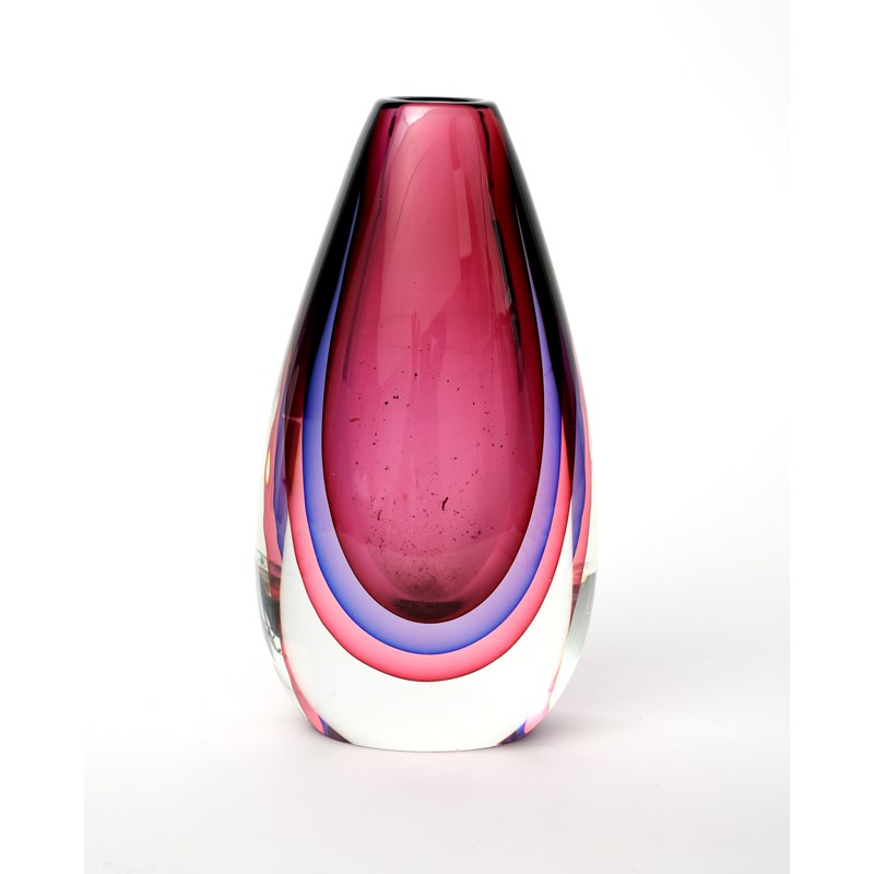 A Murano Sommerso glass vase, teardrop form red, blue and purple glass cased in heavy clear body, unsigned, 30cm. high