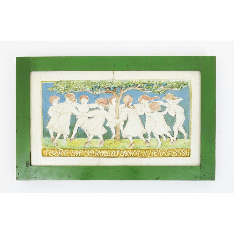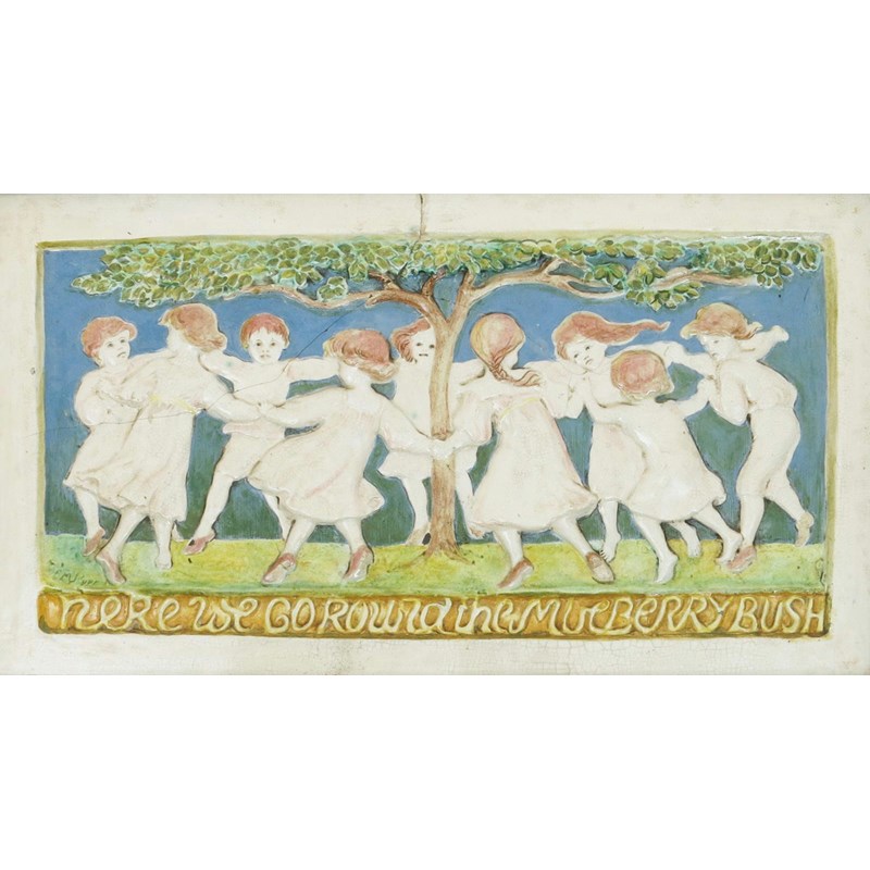 'Here We Go Round the Mulberry Bush' a rare Della Robbia plaque designed by Ellen Mary Rope