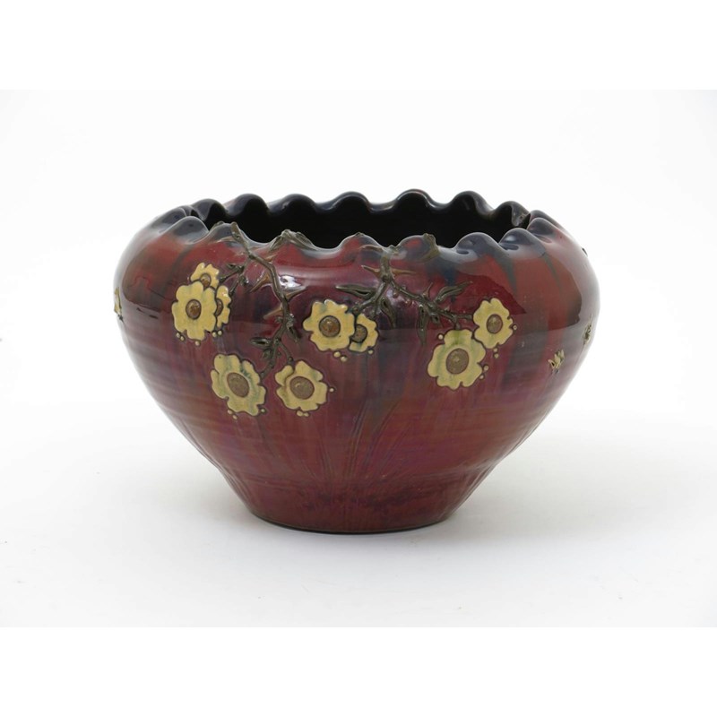 An Early Sunflower Pottery jardiniere by Sir Edmund Elton