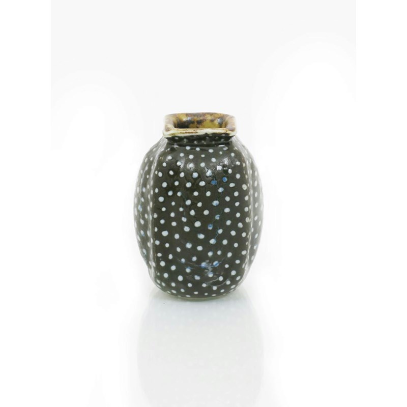 A Martin Brothers stoneware gourd vase by Edwin & Walter Martin, dated 1907, shouldered, swollen form painted olive green with white spots and blue highlights, incised 3-1907 Martin Bros London & Southall 8cm. high
