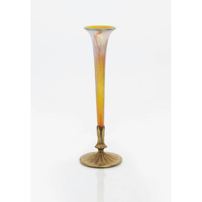 A Louis C Tiffany Favrile glass solifleur vase with gilt bronze base