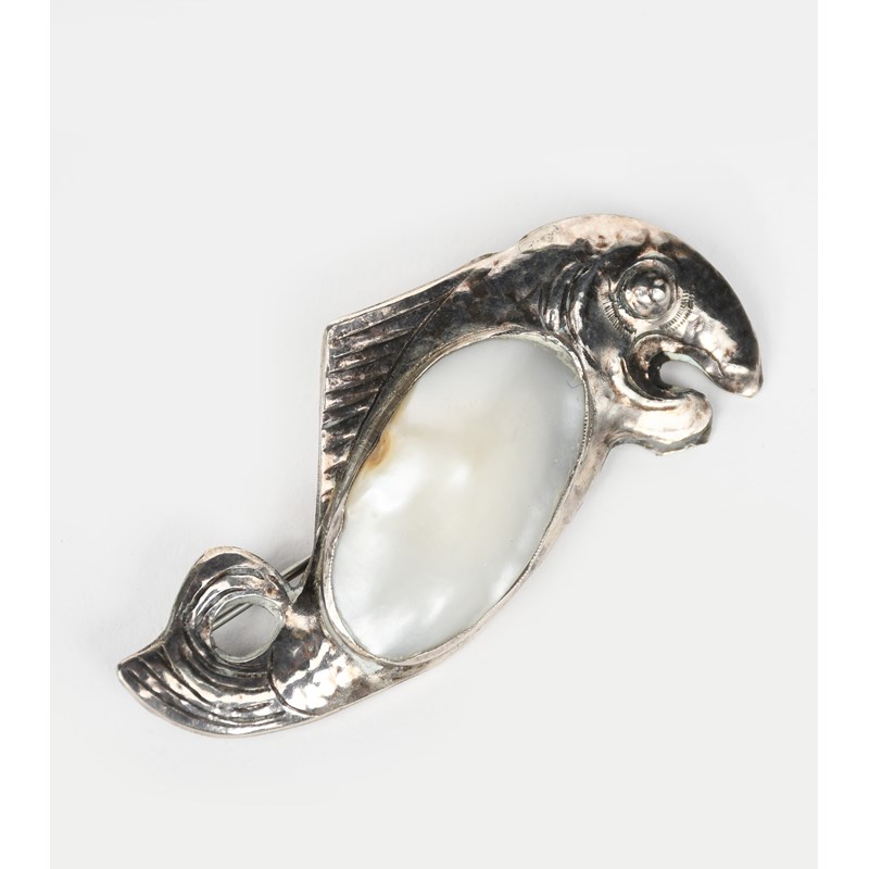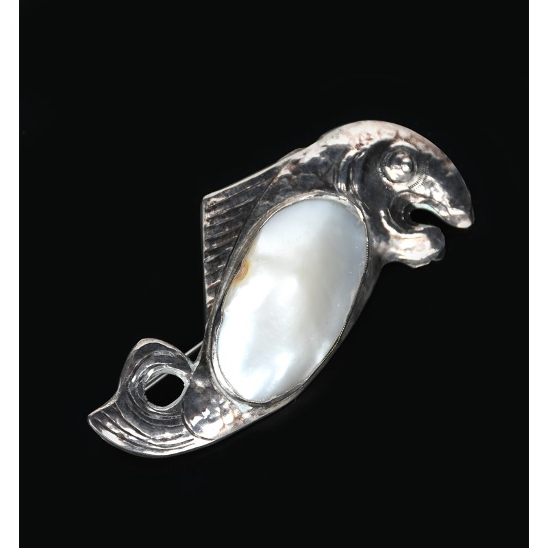 An early George Hunt silver and abalone shell fish brooch