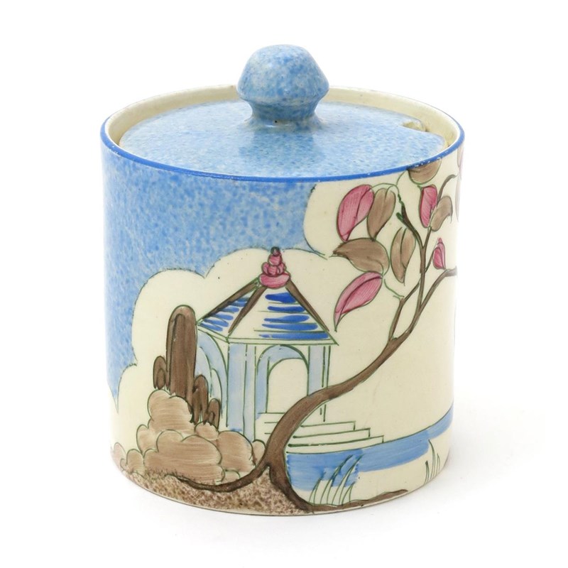 'Blue Japan' a Clarice Cliff Bizarre Cylindrical preserve pot and cover