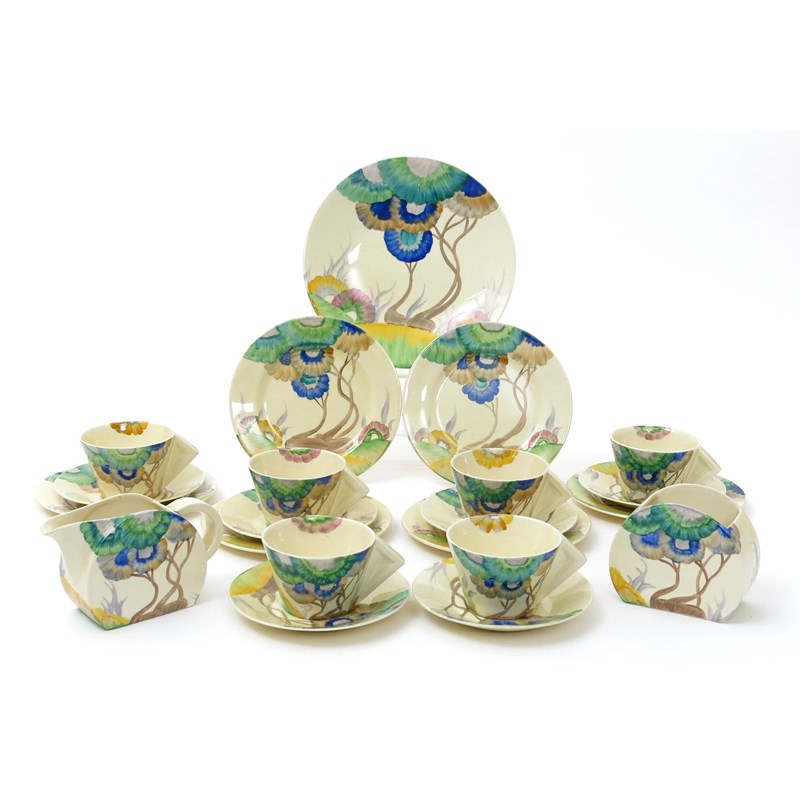 'Viscaria' a Clarice Cliff Bizarre Conical tea service for six