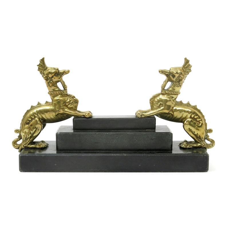 A pair of polished bronze models of dragons