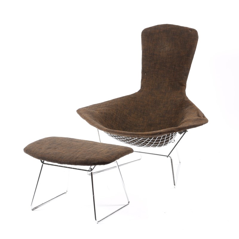 A Knoll Bird chair and ottoman designed by Harry Bertoia