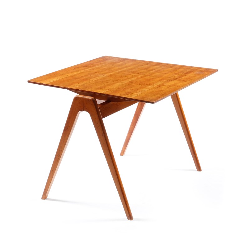 A Hille Hilleplan Coffeestak beech frame table designed by Robin Day, on streamlined tapering legs, with veneered square top, unsigned, 51cm. high, top 61cm square