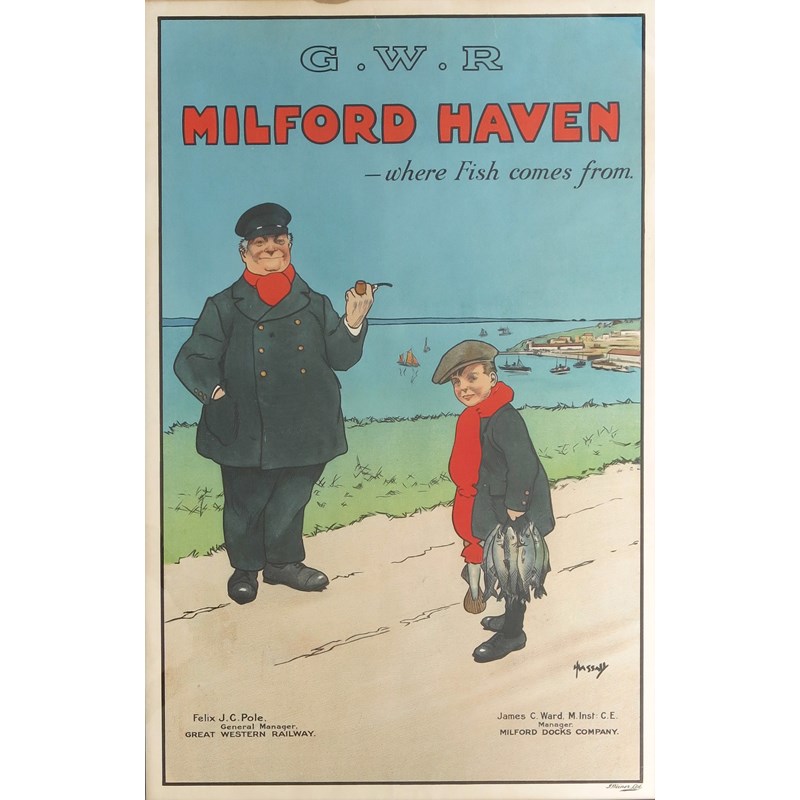 John Hassall (1868-1948) Milford Haven - Where Fish Come From a GWR lithographic poster published...