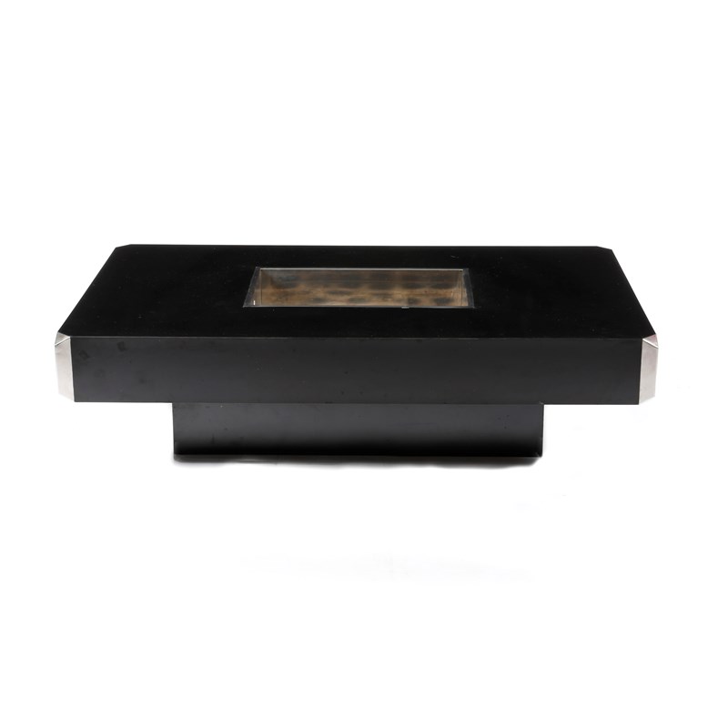 A Cidue black veneer and chromed metal low table designed by Willy Rizzo