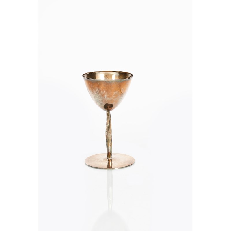 A Liberty Cymric silver chalice designed by Archibald Knox, model no.278, flat circular base supporting twisted stem and flaring bowl, worn stamped marks to base, Birmingham, 20cm. high