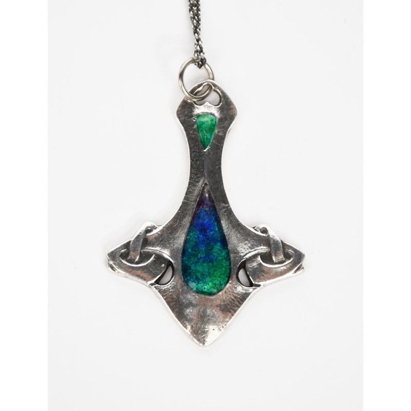 A Liberty silver and enamel pendant necklace designed by Archibald Knox, made by William H. Haseler,