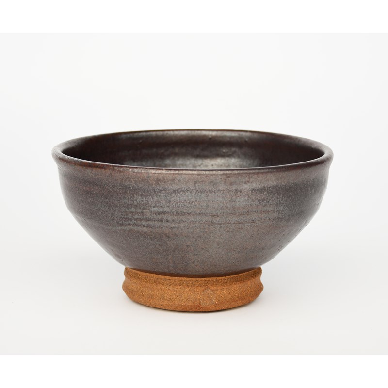 a stoneware footed bowl, covered to the foot with a rich brown glaze to the foot, impressed seal mark, incised CM and painted 6, 18cm. diam. 10cm. high